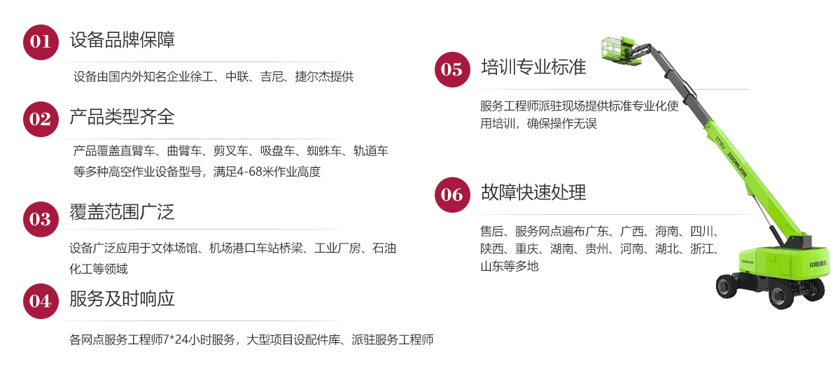 公司在發(fā)展歷程中堅定實行大客戶戰(zhàn)略,致力于以優(yōu)質(zhì)的服務(wù)打造公司的品牌和核心競爭力,現(xiàn)已在廣東、廣西、海南、四川、陜西、湖南、重慶、河南、湖北、貴州等多地建立了完善的售后服務(wù)網(wǎng)點,24小時為客戶排憂解難。今后我們將結(jié)合市場需求,不斷創(chuàng)新業(yè)務(wù)模式、優(yōu)化設(shè)備結(jié)構(gòu)、加強(qiáng)運營管理、擴(kuò)大服務(wù)網(wǎng)點、提升服務(wù)水平,形成以設(shè)備租賃、銷售、二手設(shè)備交易等全方位一站式的全面服務(wù)體系,用高標(biāo)準(zhǔn)高質(zhì)量的服務(wù)讓客戶在和公司合作的過程中實實在在感受到省心、省力、省錢的體驗,在客戶心目中樹立“家鋒”的品牌形象。